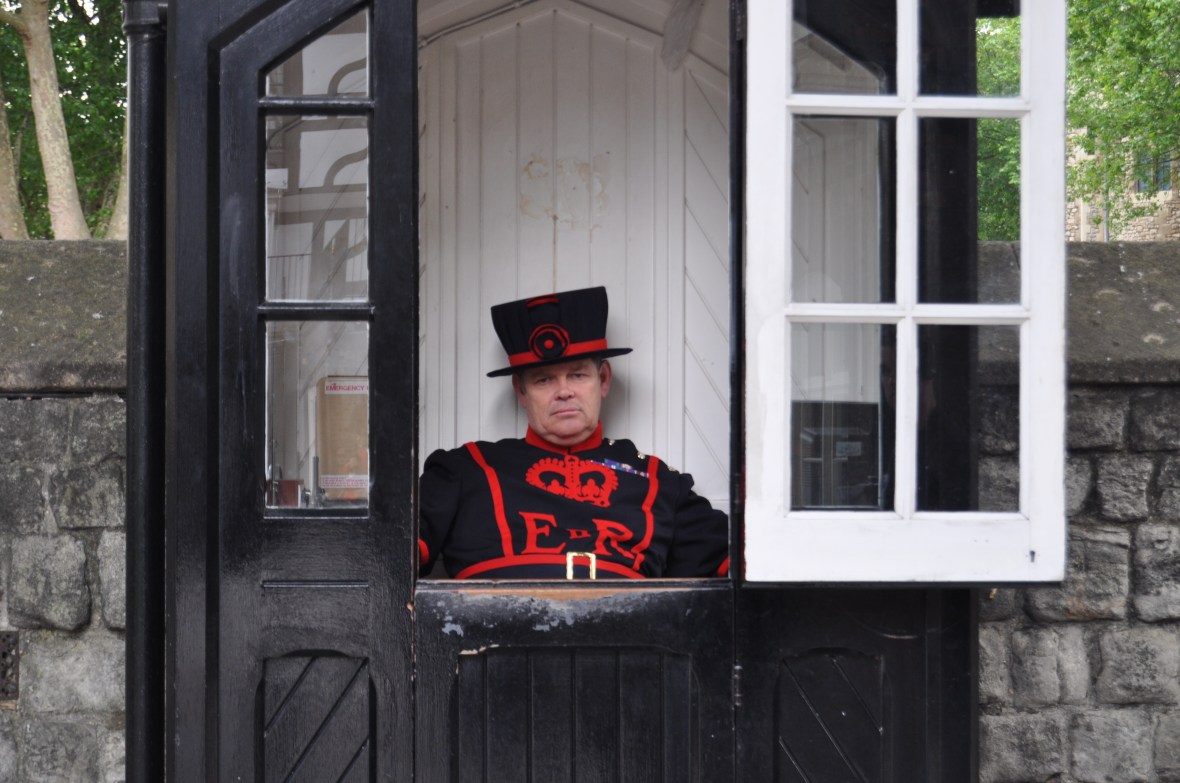 But much as I mentally urged him to change his demeanour, his face wore the same expression of disgruntlement. So many tourists, and they all want a smile, the expression read. Think you’re the first person who ever snapped a beefeater-in-a-little-house shot? Lady, you are the 1,106th today to try this. My patience wore out at number 5.