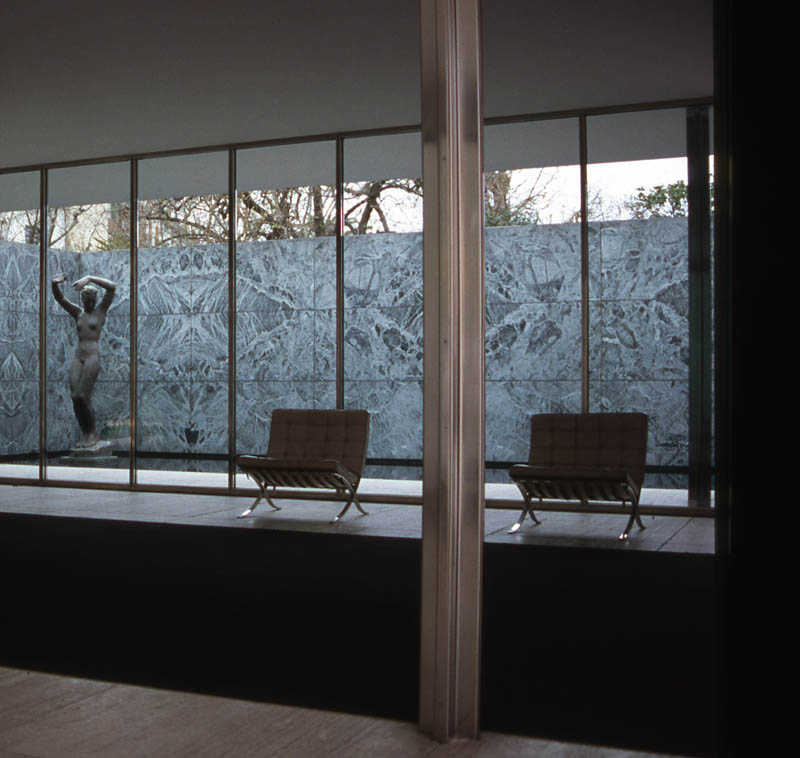 Inside the pavilion, with Mies’ famous Barcelona Chair