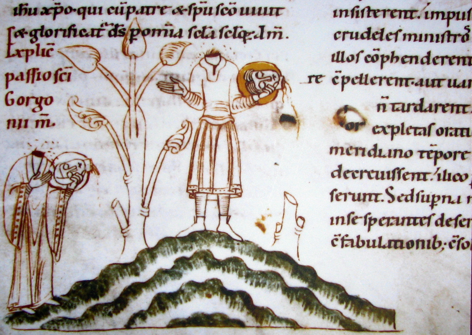 7. Great if overly pious tale. It’s extraordinary how often this motif of the headless martyr walking off with its head to a site where a church or basilica eventually gets built is found recycled in another place with another saint. Most famously Saint Denis of France walked off with his decapitated head to where the Abbey of Saint-Denis now stands north of Paris, and there are no end of obscure Dark Age saints who had the same happen to them, in Britain as well as on the continent.