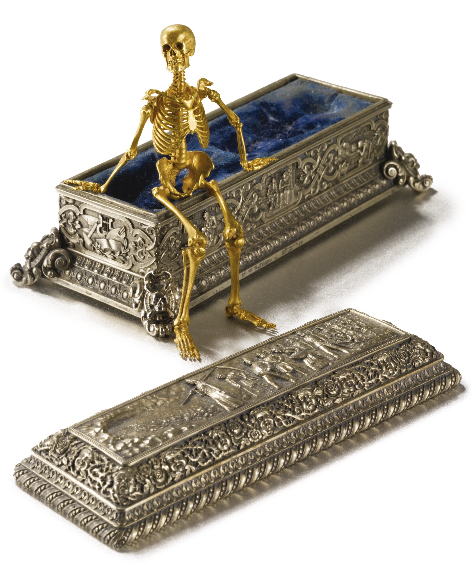 The man who made this was a strange silversmith indeed. Israel Rouchomovsky first came into the public eye when he was conned by tricksters into creating a tiara sold to the Louvre as Ancient Scythian. But notoriety had its advantages: Rouchomovsky was able to show the world his pride and joy; this skeleton, which had taken him more than a decade to complete.