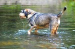 It was a hot day, and Mac was delighted to find a place to cool hot paws. He stalked around in gentrified lake water up to his doggy ankles, and policed ripples and sun glimmers with equal fastidiousness.